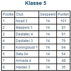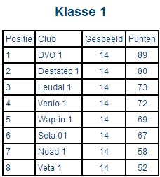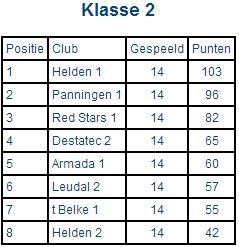 Eindstanden seizoen 2014-2015